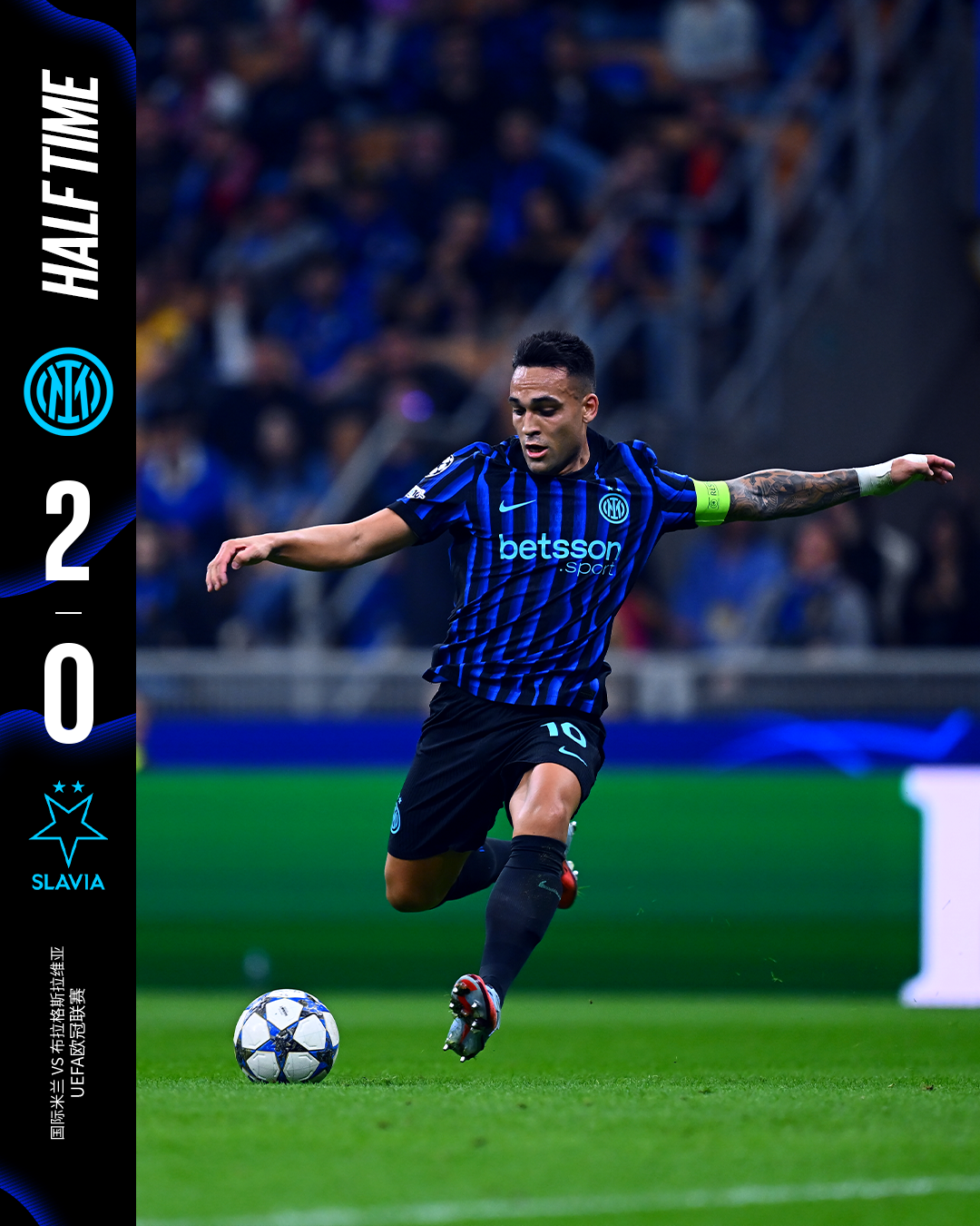 上半场比赛结束,国际米兰暂时以2比0领先布拉格斯拉维亚,球迷们对下半场的比赛充满了期待。