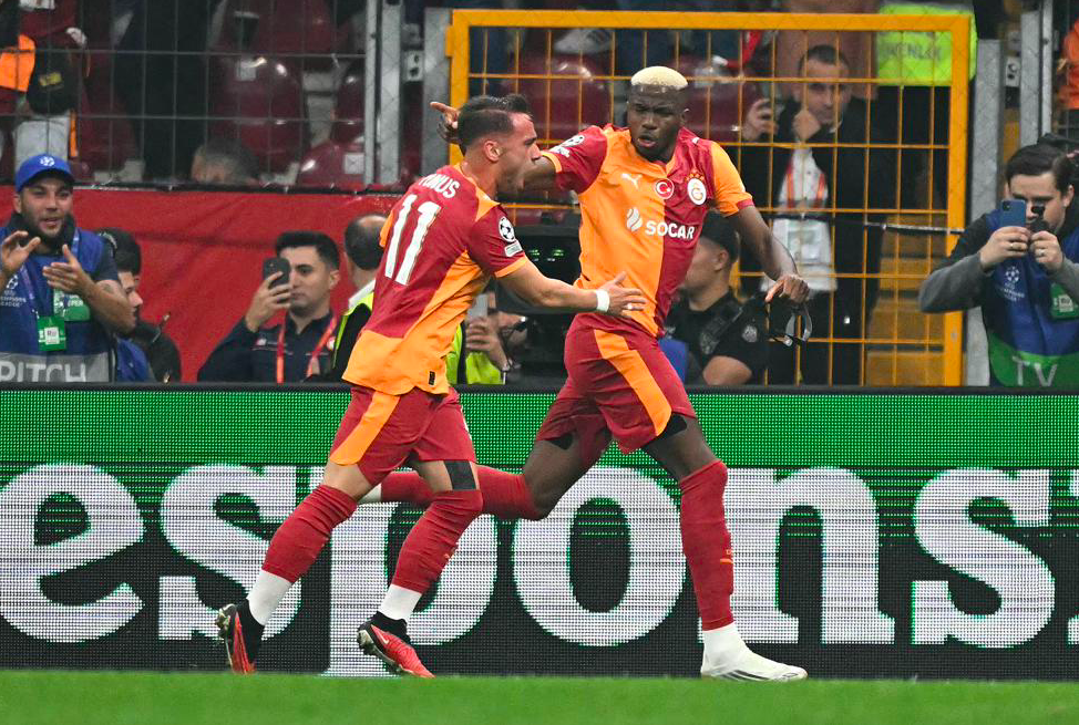 第14分钟,场上风云突变。索博斯洛伊在防守过程中连续两次手部动作击中伊尔马兹面部,裁判果断判罚点球。第16分钟,奥斯梅恩主罚点球大力射向中路,帮助加拉塔萨雷取得领先。凭借这粒进球,奥斯梅恩成为欧冠赛场上进球最多的尼日利亚球员。