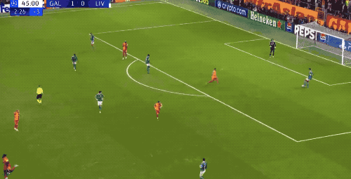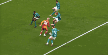 上半场补时阶段,加拉塔萨雷高位逼抢成功,赫拉芬贝赫被断球后放倒奥斯梅恩,幸而犯规地点在禁区外。