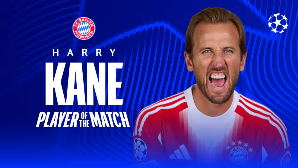 雷速体育10月1日讯,在刚刚结束的一场欧战赛事中,拜仁慕尼黑凭借着哈里·凯恩的出色发挥,以5-1的比分在客场大胜塞浦路斯球队帕福斯FC。值得一提的是,凯恩在比赛中连续第5场各项赛事完成梅开二度,赛后他毫无悬念地当选了官方全场比赛最佳球员。