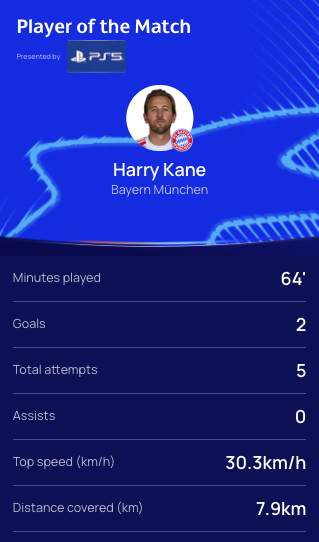 欧足联官方技术观察组在赛后对凯恩的表现给予了高度评价:“凯恩的触球、视野、意识和门前终结能力都给对手带来了持续的威胁。他本场比赛的位置比以往更靠后一些,因此很难被对手盯防。他的存在让拜仁的进攻更加多样化,也更具威胁性。”