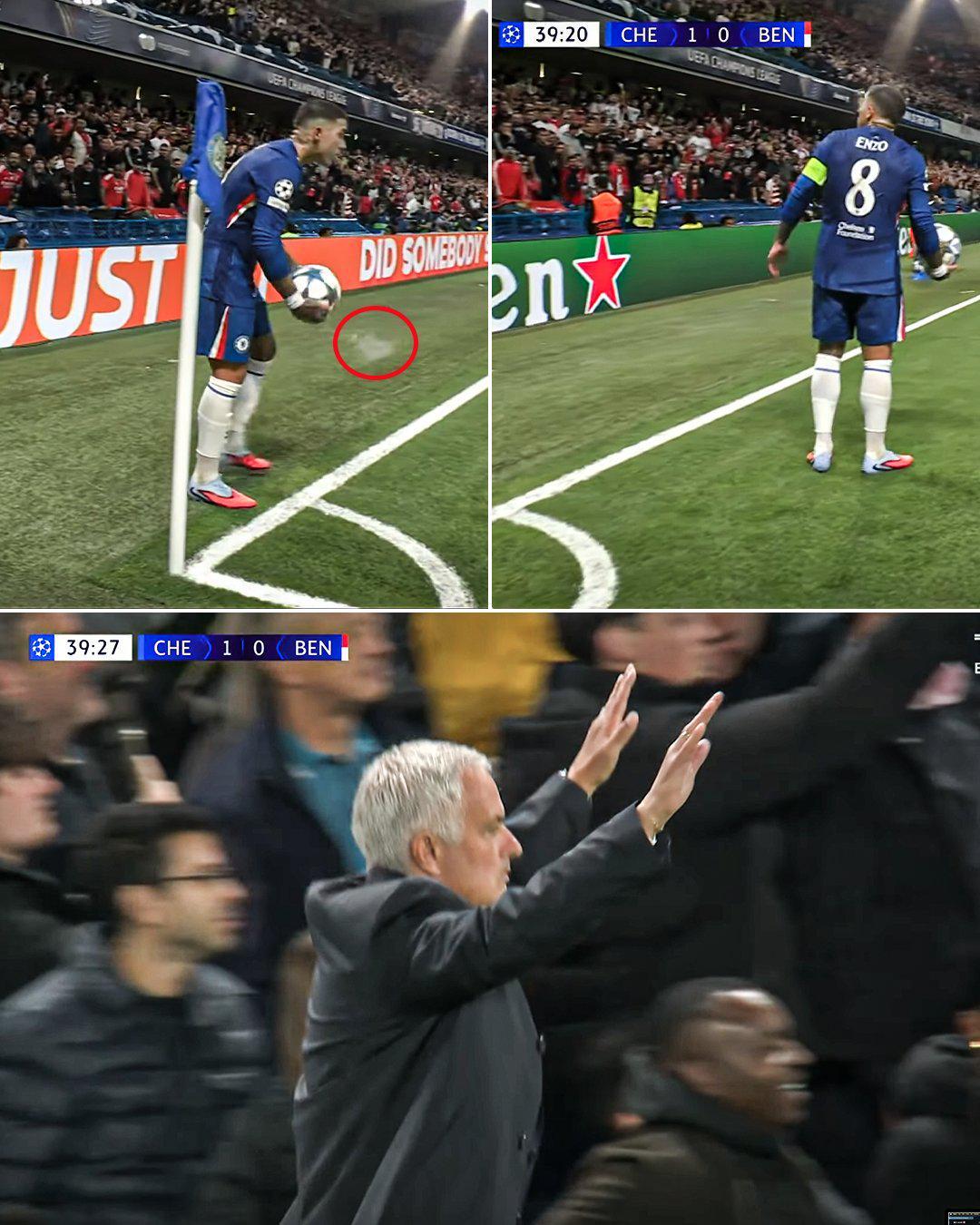 比赛进行到第39分钟时,场上出现了令人意外的一幕。切尔西中场核心恩佐·费尔南德斯在准备主罚角球前,向本菲卡球迷看台方向鼓掌致意,表达对球迷的尊重。然而,这一友善举动却引来了本菲卡极端球迷的不满,他们向恩佐投掷水瓶进行攻击。恩佐曾在2022-23赛季短暂效力于本菲卡,并在2023年夏天以高达1.21亿欧元的转会费加盟切尔西,这一转会或许成为了部分球迷情绪激动的原因。
