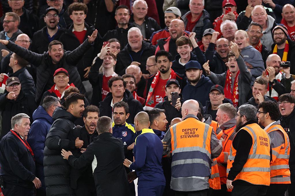 据现场目击者描述,冲突发生在比赛第89分钟,当时马竞正以2-3落后,情绪激动的西蒙尼与利物浦球迷区产生言语交锋,最终导致被罚下。这也是西蒙尼执教生涯中极为罕见的纪律处罚,此前他虽以激情指挥著称,但极少出现与观众直接冲突的情况。