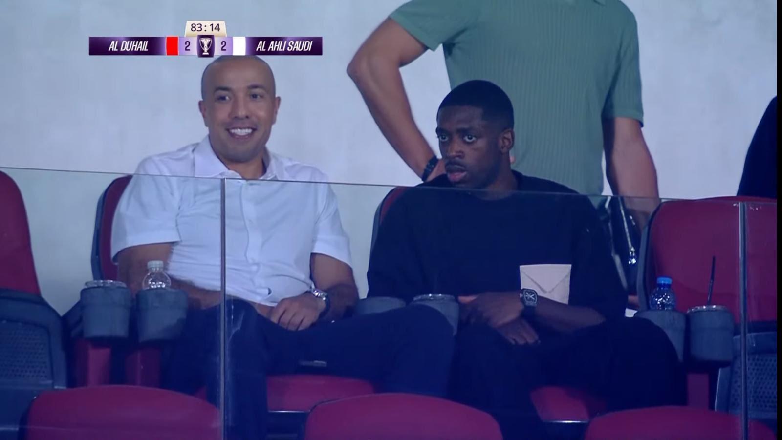 雷速体育10月1日讯,在昨日凌晨落幕的2025/26赛季亚冠精英联赛中,卡塔尔劲旅杜海勒与卫冕冠军吉达国民以2-2的比分握手言和。而本场比赛的看台上,出现了一位引人注目的观众——新晋金球奖得主登贝莱。