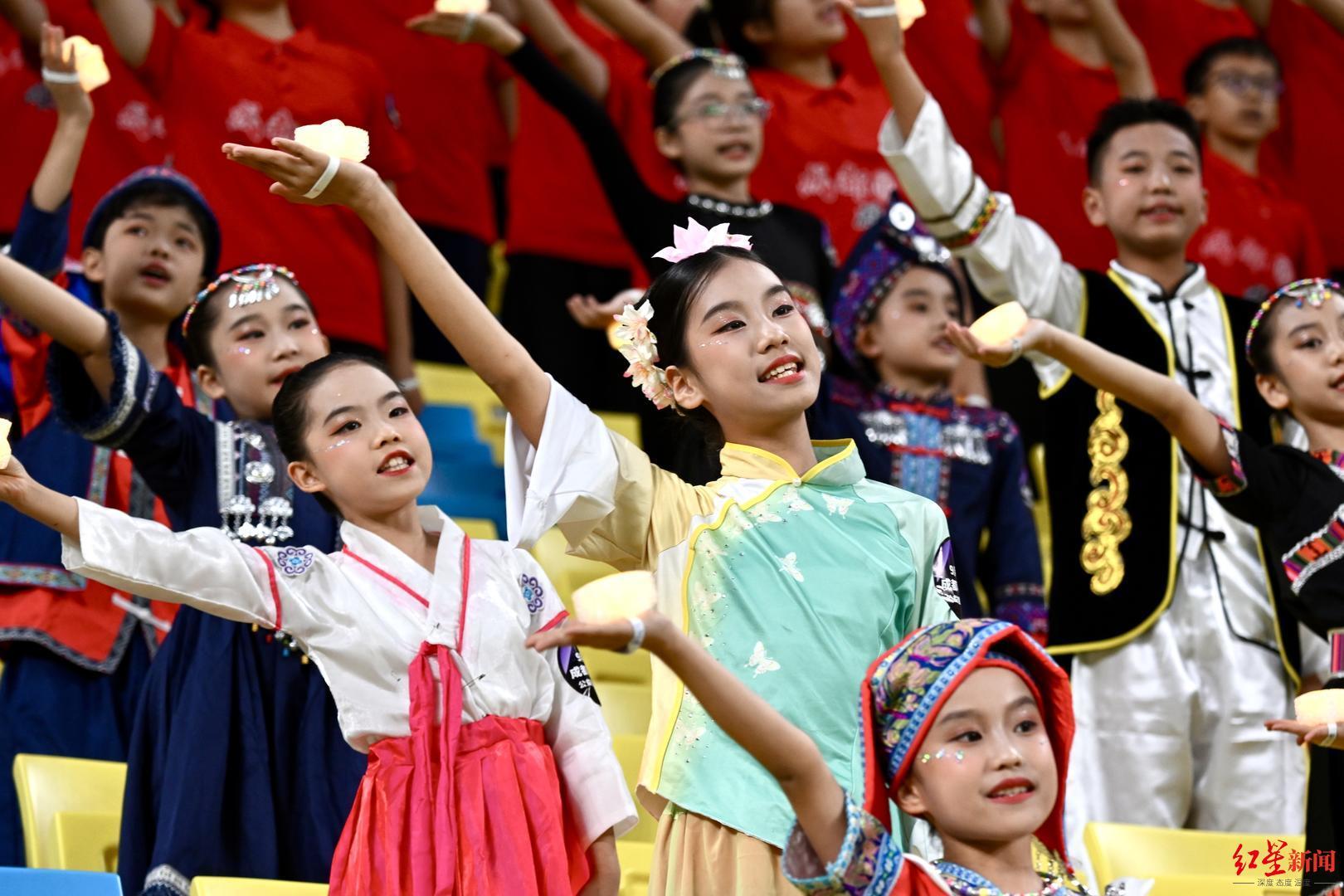 ▲孩子们献唱助威