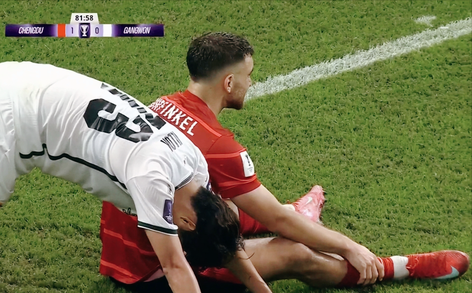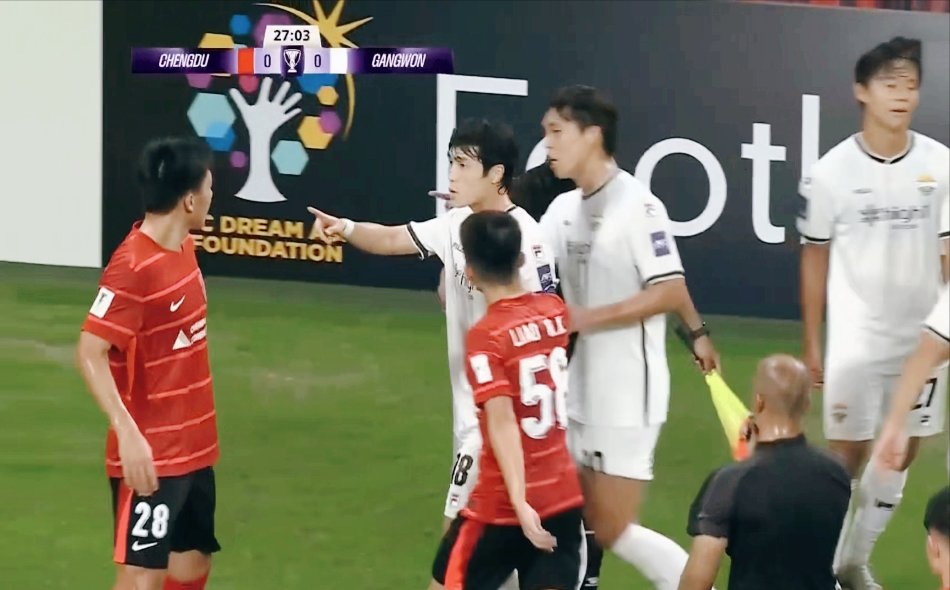 比赛伊始,客场作战的江原FC便展现出强烈的进攻欲望,前场逼抢积极,右边路三人配合默契,多次突破至底线形成传中。面对对手的猛烈攻势,成都蓉城在进攻端显得颇为被动,费利佩、罗慕洛等核心球员拿球机会有限,难以组织起有效的进攻。