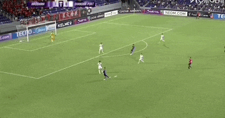 第19分钟,主场作战的广岛三箭利用角球机会打破僵局。身高1米86的中卫荒木隼人后点头球破门,帮助球队1-0取得领先。领先后的广岛三箭士气大振,上半场剩余时间完成多次射门,给海港后防带来巨大压力。门将陈威表现神勇,多次做出精彩扑救,力保球门不失。半场战罢,海港射门数仅2次,而对手多达10次。