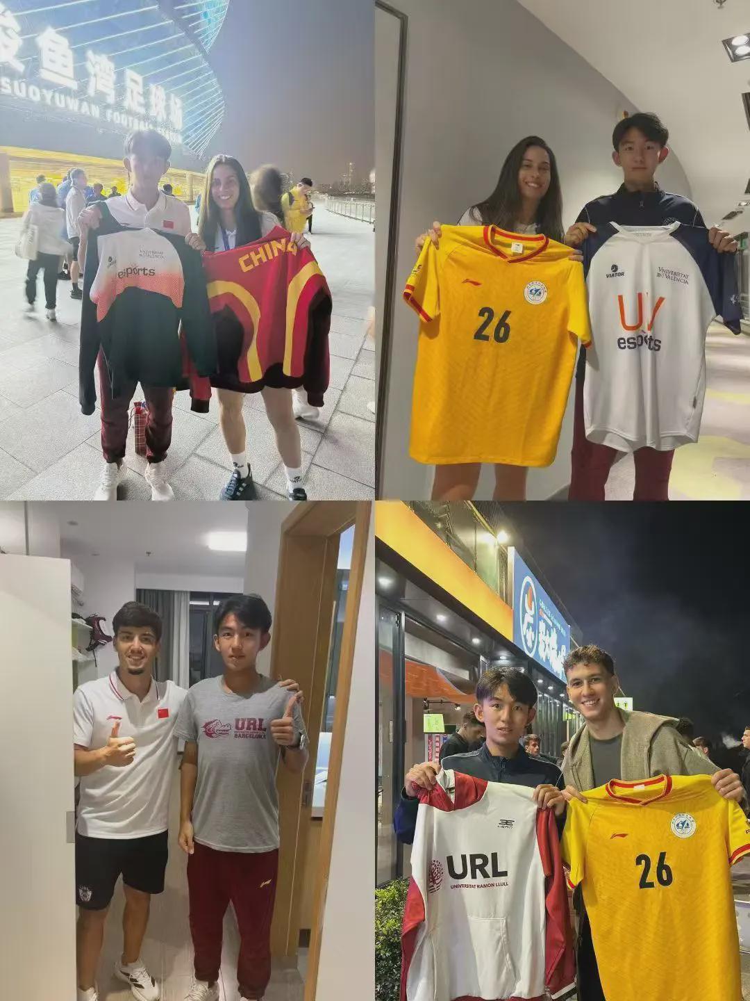 走出球场,不少其他国家队的队员和中国队队员交换球衣,这是属于大学生体育赛事的特殊“社交礼仪”。