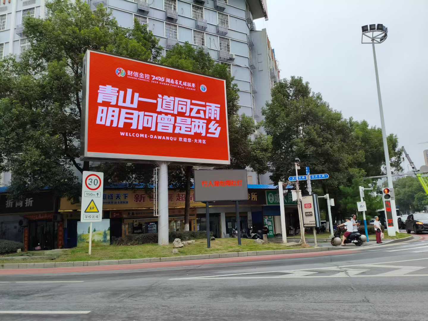 △黄澍拍下邵阳市给大湾区球队打出的欢迎标语。受访人提供