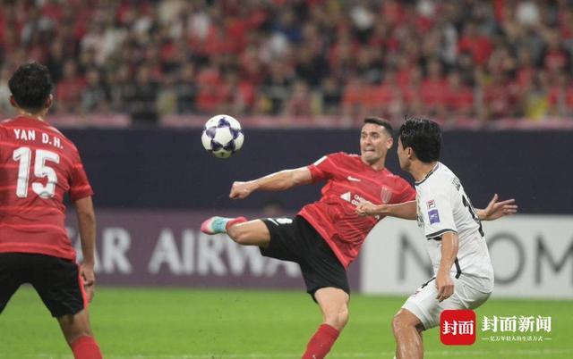 上半场比赛,江原FC控球稍占上风,成都蓉城则更多地使用犯规来阻挡对手。阿联酋的主裁判吹罚尺度比较松,一般的身体对抗都不会吹哨,对此成都蓉城一度不太适应。比赛的转折发生在第35分钟,成都蓉城获得前场角球,罗慕洛主罚开到后点,杨帅头球回点到中路,周定洋不停球凌空打门,虽然角度比较正,但江原门将措手不及,皮球钻进网窝,1-0!成都蓉城取得领先!这粒进球无疑极大地提升了球队士气,成都蓉城开始慢慢扭转场上被动的局势。