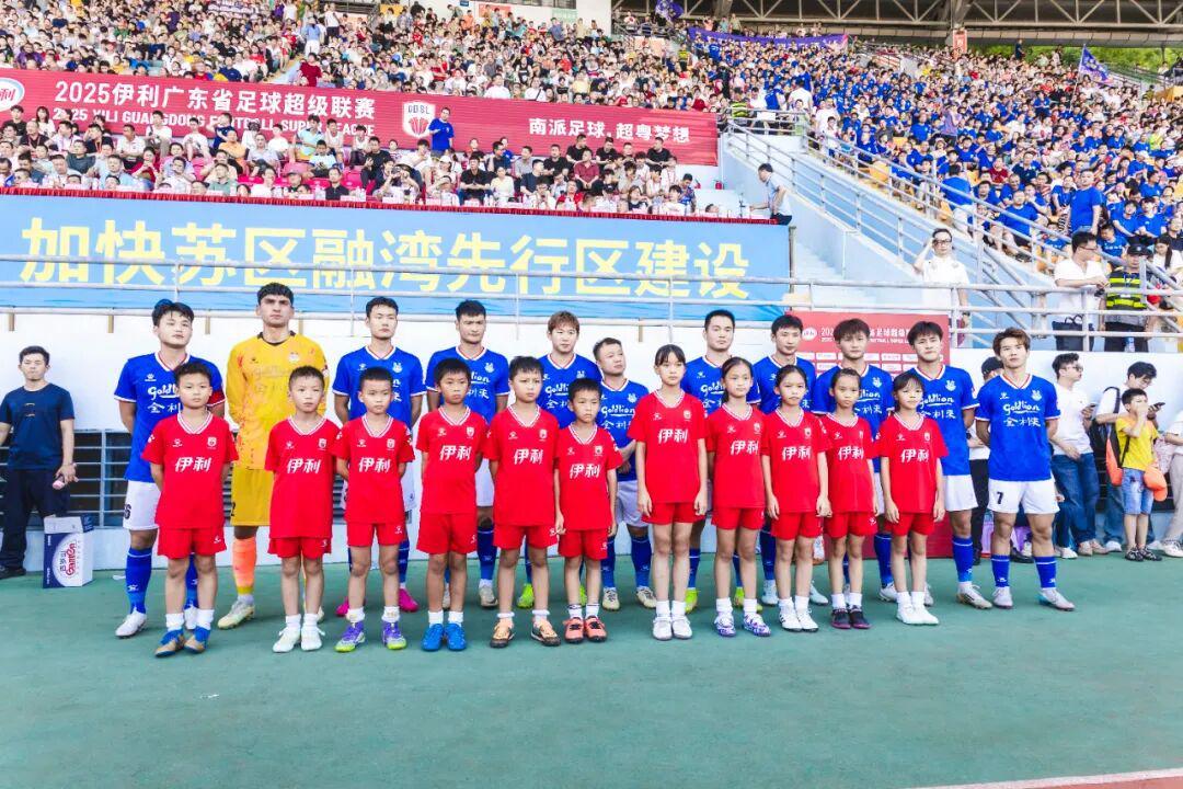 前段时间,在广东省足球超级联赛的开幕式上,10名来自广东英德U10梯队的小球员们担任球童,携手球员们一同入场。