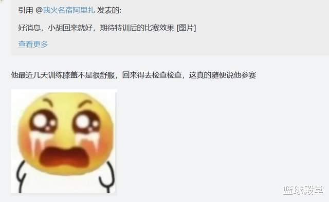 然而,有球迷透露称,胡明轩在最近几天的训练中膝盖出现了不适的情况,回国后将进行检查。这一消息无疑给他的出战前景蒙上了一层阴影。如果确实如此,那么这可能与他的行程过于紧密有关。一方面,国家队结束后他便投入了高强度的训练;另一方面,今年休赛季他似乎也没有得到足够的休息时间。这对于胡明轩的身体来说无疑是一个巨大的挑战。我们衷心希望他能够尽快恢复健康,以最佳状态迎接接下来的比赛。