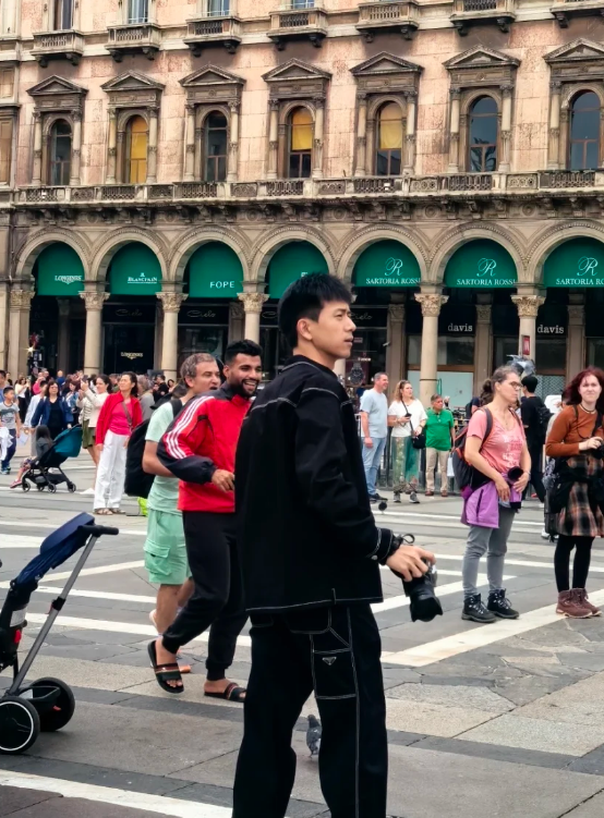 这位哥私下的状态更松弛,其他人扫街抱着出神图的决心,而李现扫街是拎着专业相机拍街景。