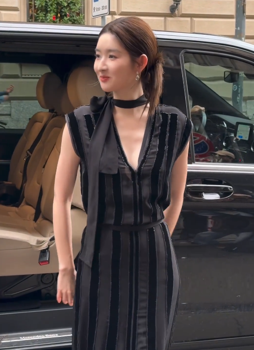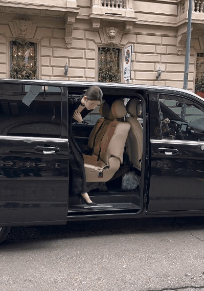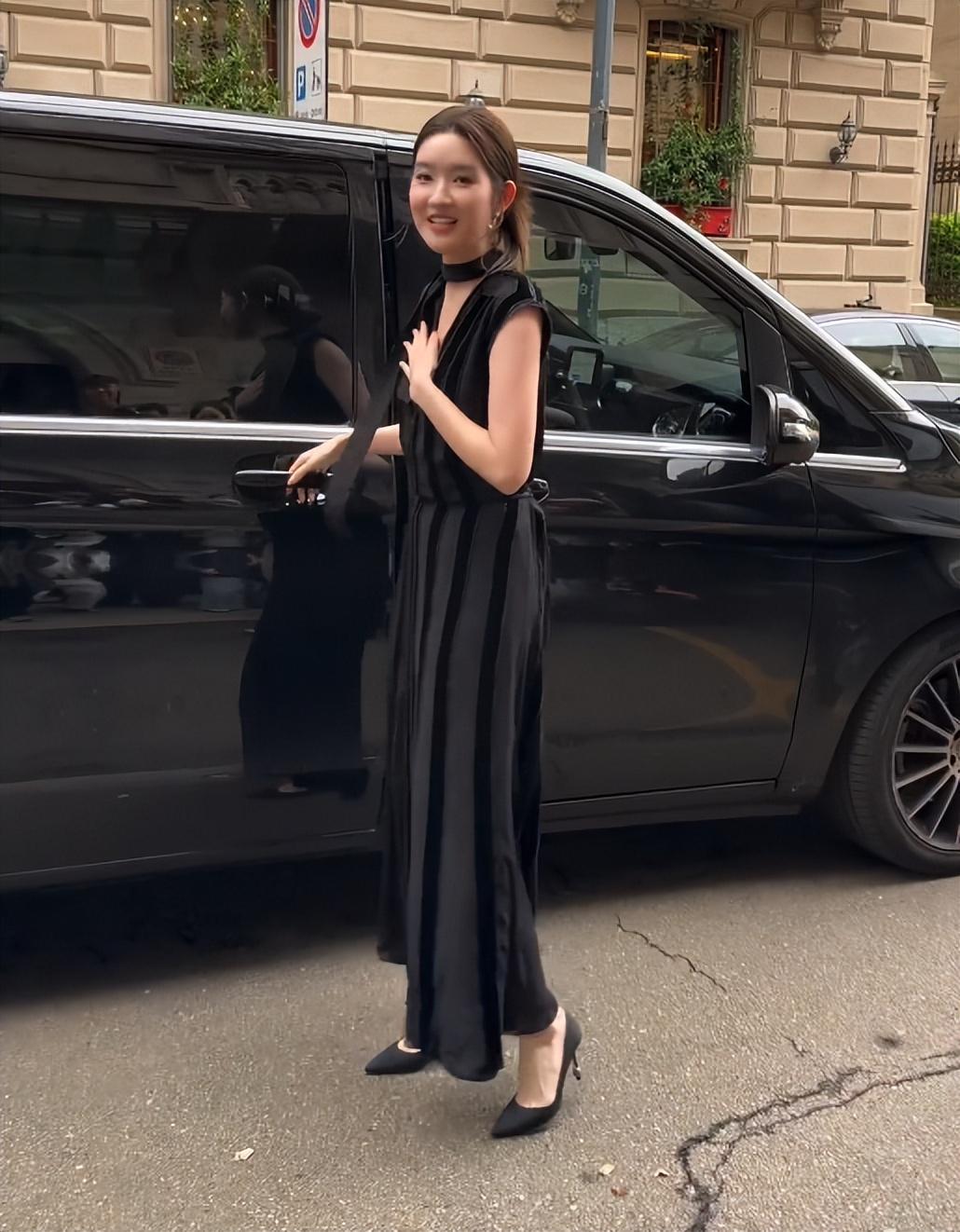但王玉雯没一点不自在,又返回车上重新走下来的一次,在米兰街头演了一段小品。