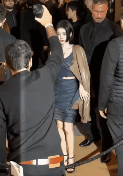 她不像是看秀,倒有种拍摄旅行vlog的既视感。
