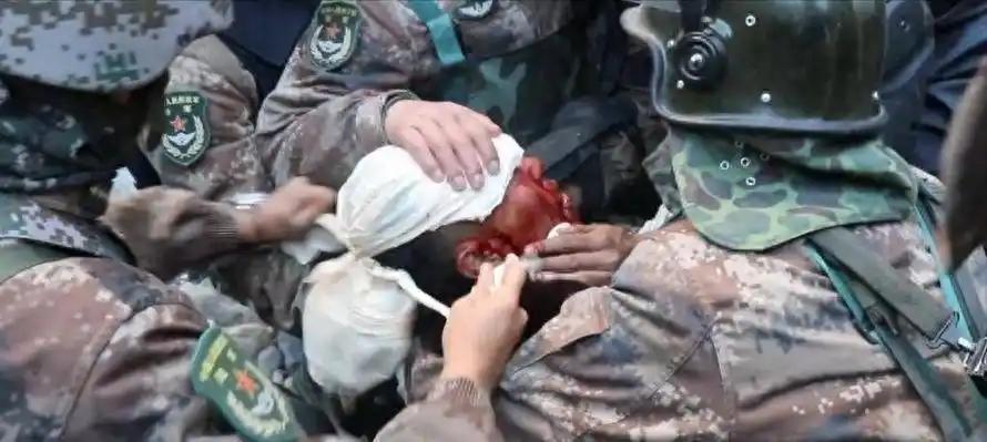只见印军兵分两路试图包抄,手持刀棍向我军压来。祁发宝眼看着就要冲入重围,危急时刻,他猛地回身张开双臂,将后面的战友们都护在了身后。