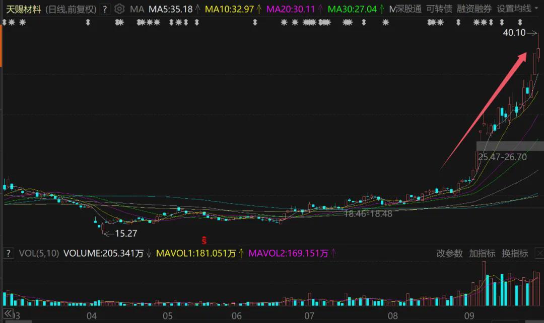 进入9月份之后,天赐材料股价彻底大爆发,9月5日、8日、15日、29日均出现涨停,截至9月30日收盘,当月上涨超过77%。