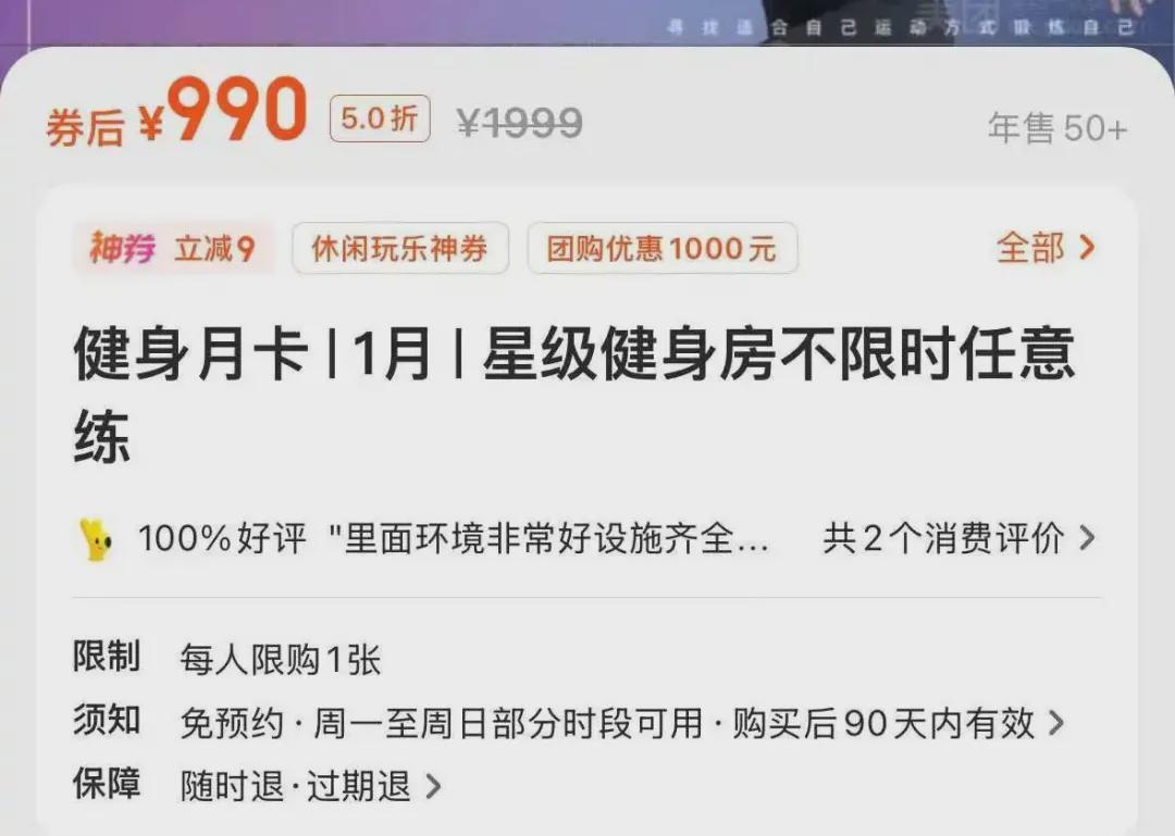 某点评上,百来块的价格,就能薅到一份健身房体验券。