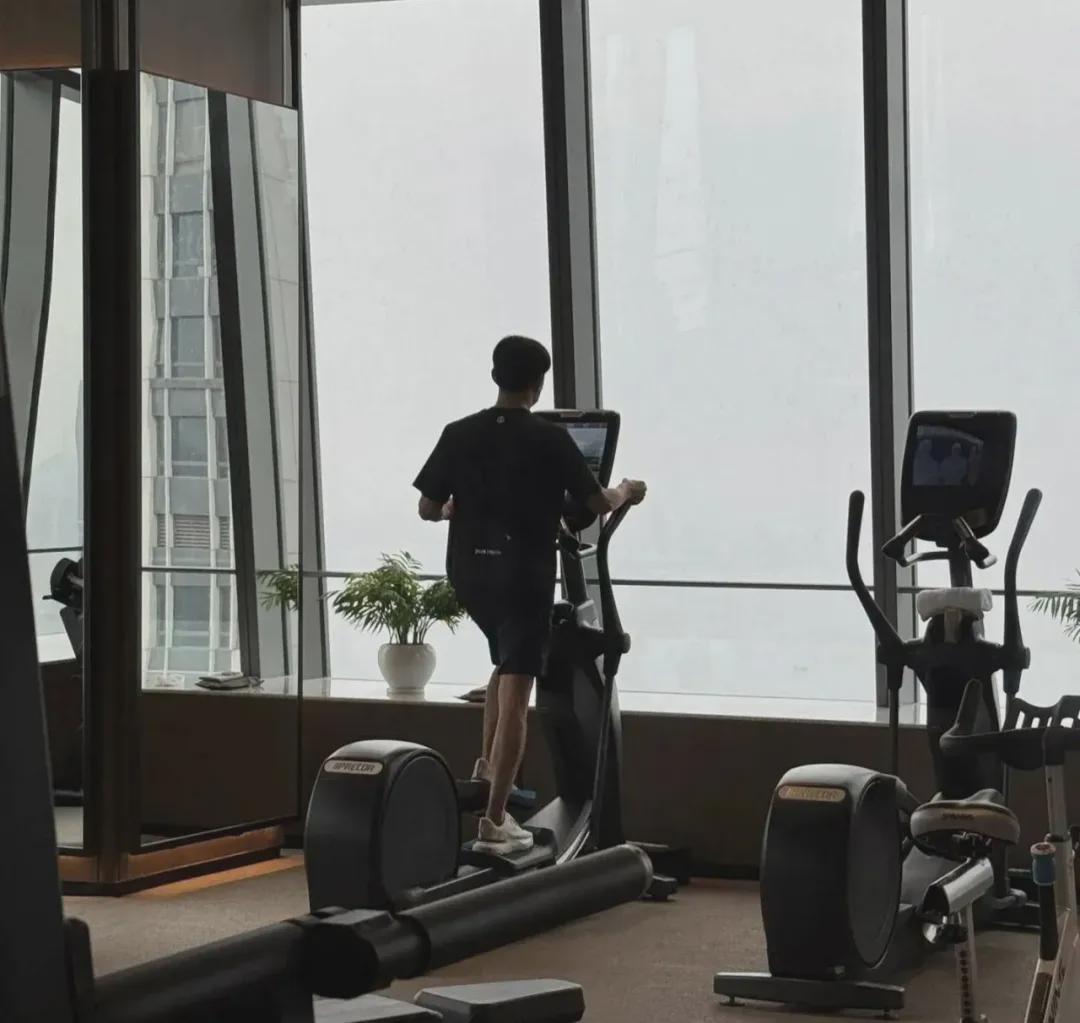 不是在山野citywalk,不是飞盘腰旗匹克球,而是在五星级酒店的健身房里回血。