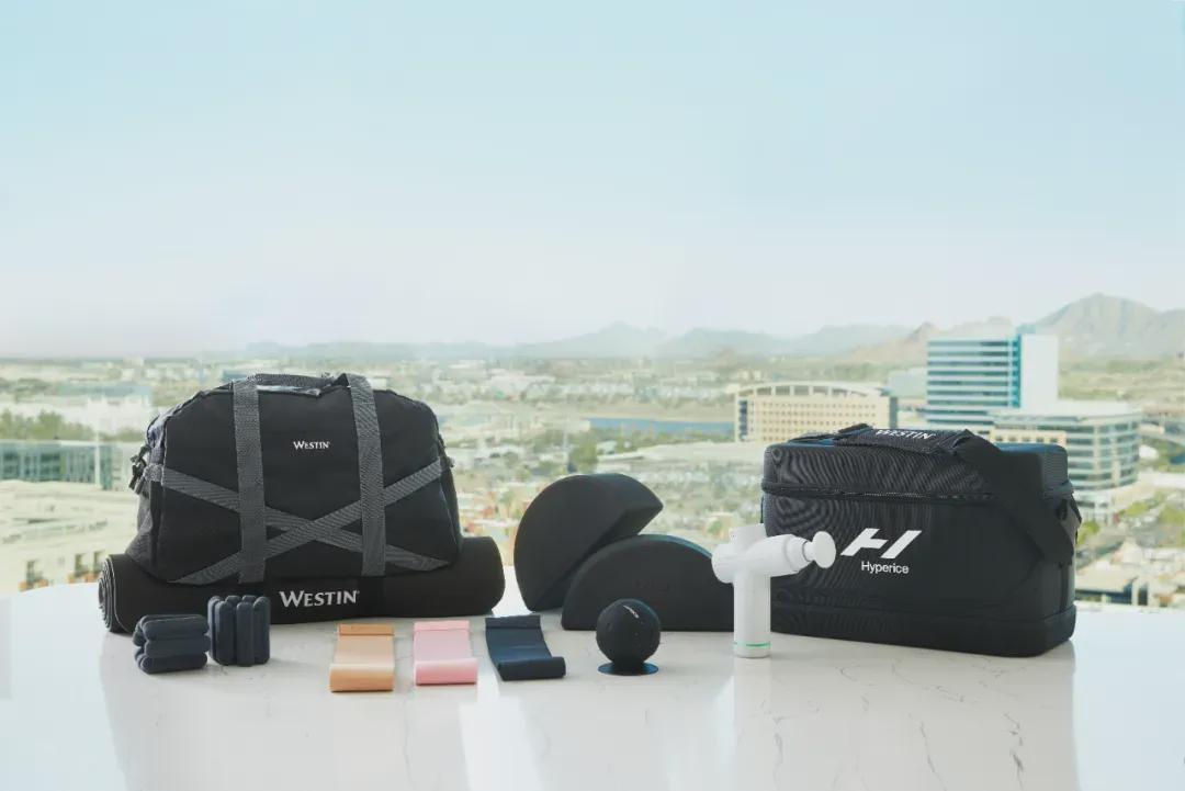 威斯汀搞了全套运动装备租赁服务,筋膜枪、阻力带、负重手环,花样整得比健身房还齐。