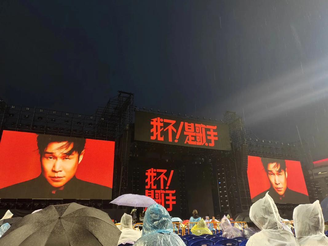 面对着他的是无数个空座位,零零散散的歌迷坐在台下,为他加油打气。