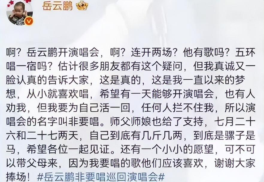 岳云鹏连开两场演唱会的勇气被全网都知道了。