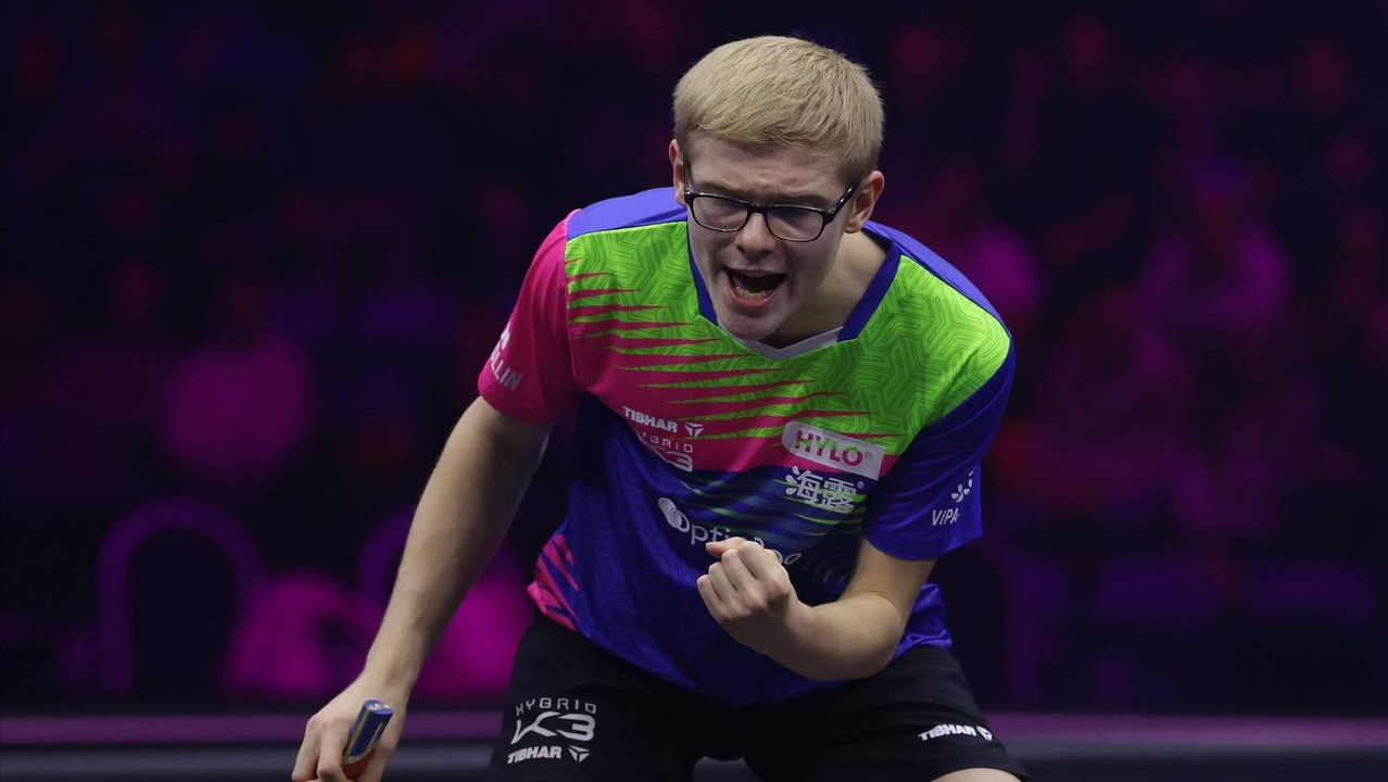 第三局,陈垣宇6-2轰出理想开局,反手压直线得分,中局阶段8-4领先。相持环节,菲利克斯转正手得分,但反手攻斜线出现无谓失误,5-9;陈垣宇发球直接得分拿到5个局点,随后拿下本局,大比分2-1领先。