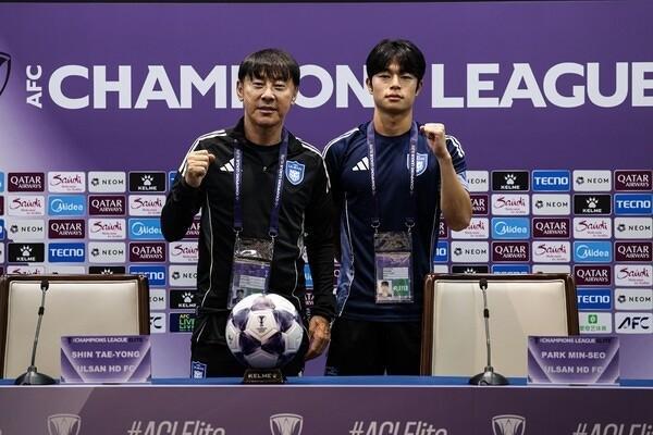 在亚冠精英联赛客场对阵上海申花的赛前新闻发布会上,蔚山现代队后卫朴悯叙作为球员代表出席并分享了对比赛的期待与个人职业展望。