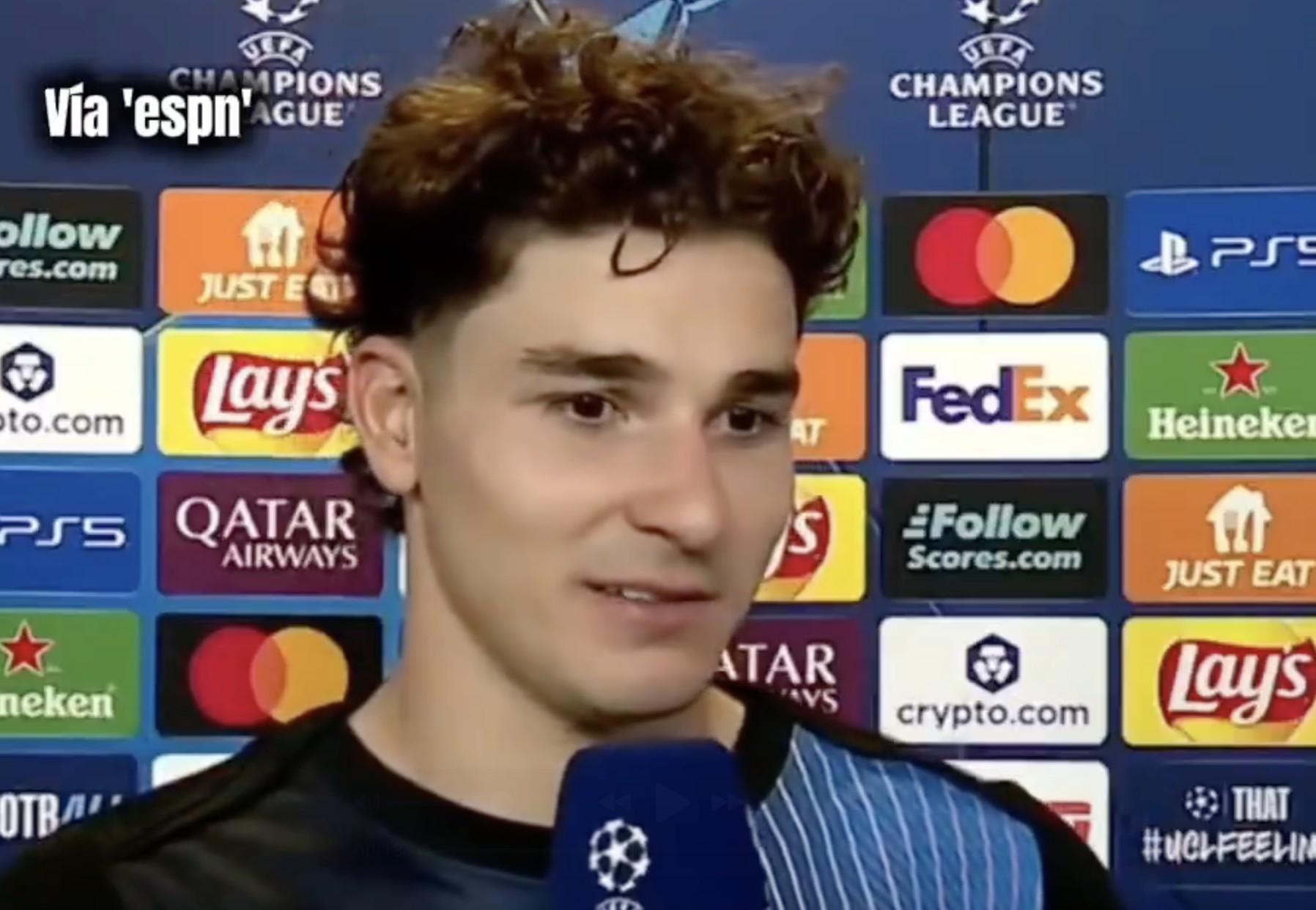 在与法兰克福的激战赛后,马德里竞技队的前锋阿尔瓦雷斯接受了ESPN的专访。当被问及近期关于他与巴塞罗那俱乐部之间的传闻时,阿尔瓦雷斯展现出了高度的职业素养和冷静态度。