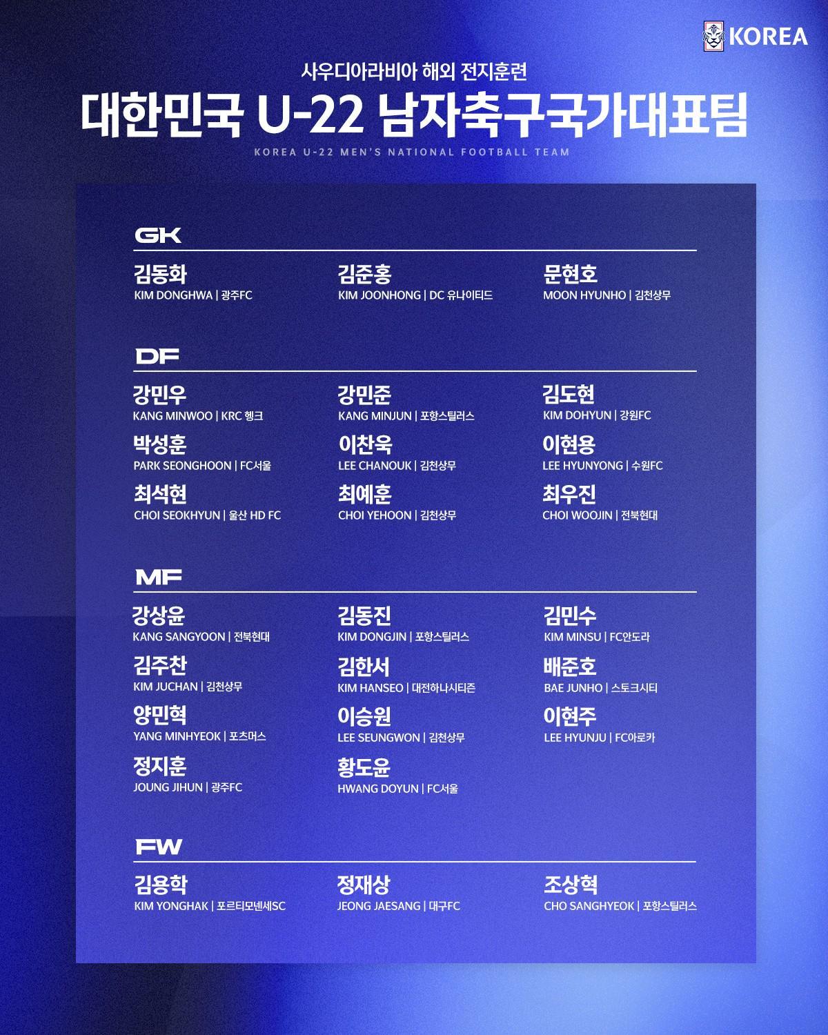 北京时间10月1日,韩国足协正式公布了韩国U22国家队最新一期的大名单。此次名单中,梁民革与裴峻浩两位实力球员领衔,同时有7名海外效力的球员入选,引发了广泛关注。本月,韩国U22国家队将与沙特U22国家队进行两场重要的热身赛。