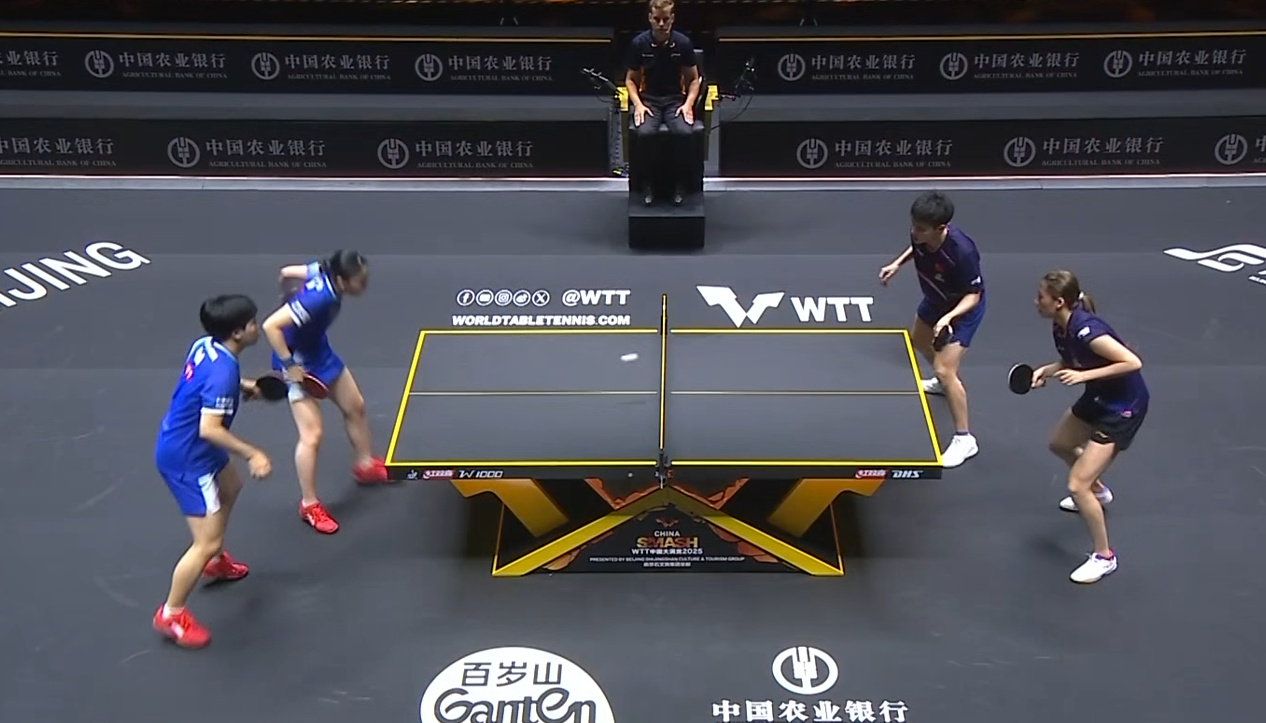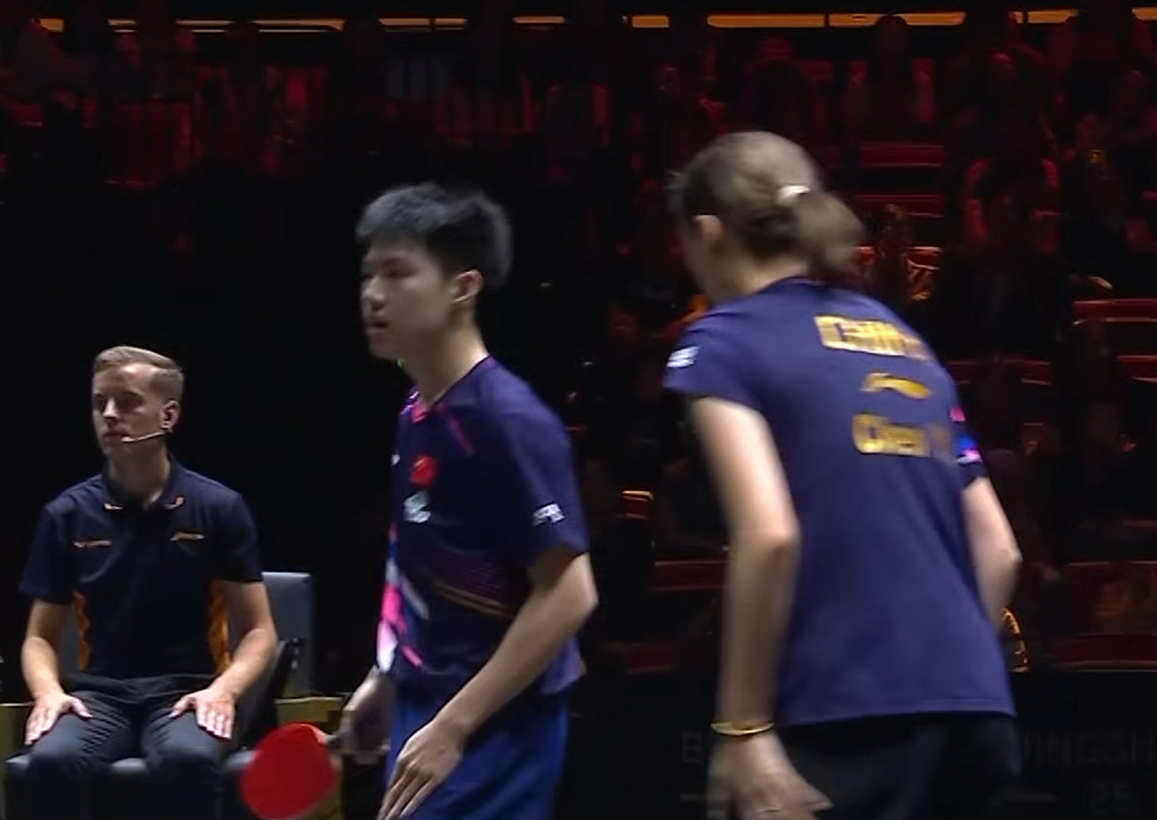 首局比赛,陈熠的发球得分迅速为组合打开局面,相持球中也保持优势,以2-0领先。随后,黄友政的发球也连得2分,局中时组合已5-1领先。陈熠和黄友政的发球侵略性极强,且保持坚定,中后局依然以7-3压制对手,最终以11-6轻松拿下首局。这一局,发球轮的优势成为决定性因素。