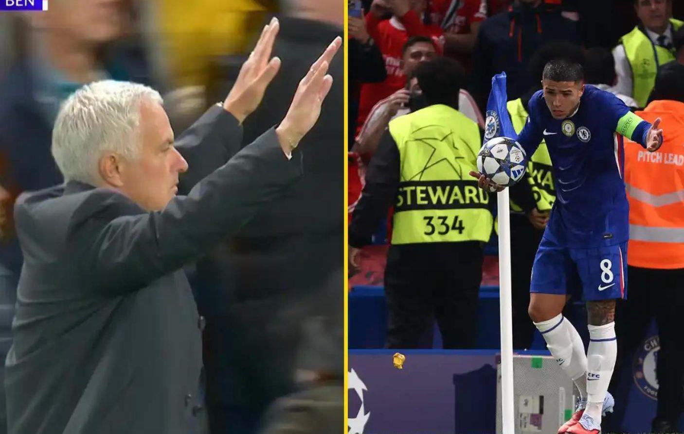 比赛进程因球迷情绪持续升温。第40分钟,恩佐准备主罚角球时,底线区域的本菲卡球迷集体辱骂并投掷杂物,所幸未造成人员受伤。面对挑衅,恩佐以拍手动作回应,此时场边指挥的穆里尼奥迅速走向看台,双手下压示意球迷冷静,成功避免冲突升级。