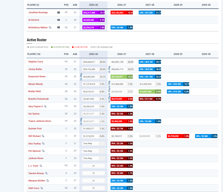 北京时间10月1日,金州勇士队正式完成阵容调整,与潜力新星库明加达成续约协议,并签下塞斯·库里(1年合同),至此新赛季15+3大名单尘埃落定。这套以“四老”库里、巴特勒、德雷蒙德·格林和霍福德为框架的阵容,既展现了冲击总冠军的野心,也因核心球员年龄问题埋下隐患。