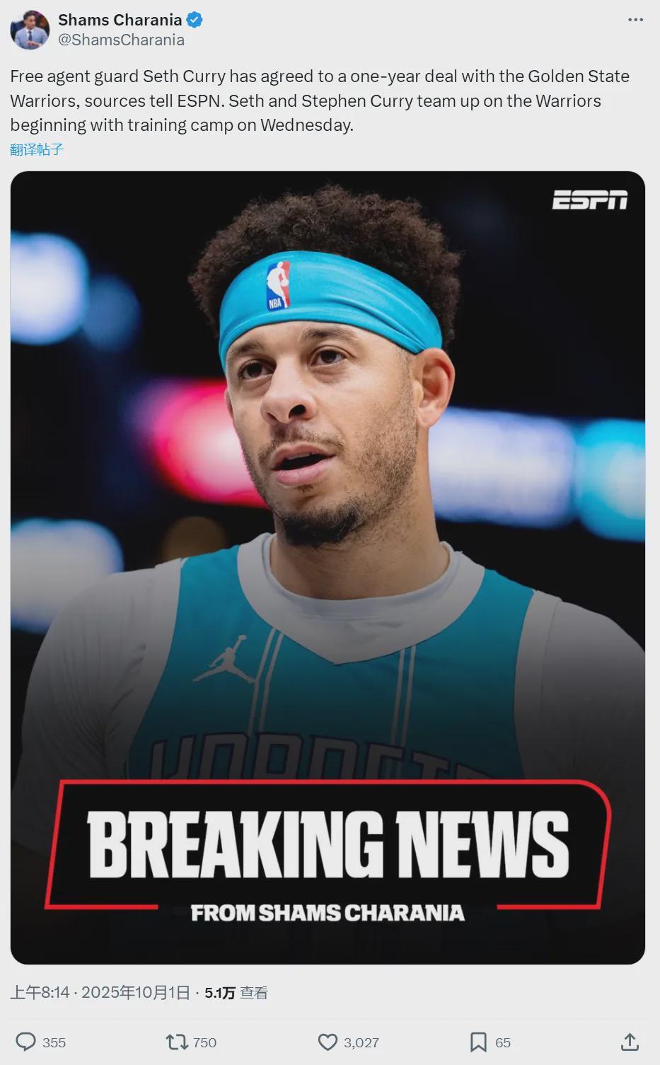 随着库明加成功续约,勇士与霍福德的合同也正式敲定:2年1200万美元,其中第二年为球员选项。此外,勇士还以底薪签回了梅尔顿和小佩顿,并成功与赛斯-库里达成一年合同。不过,小库里的合同具体细节尚未披露,有分析认为这可能是一份无保障合同或训练营合同。