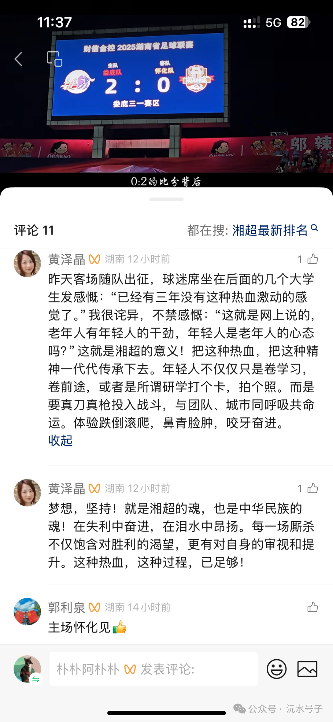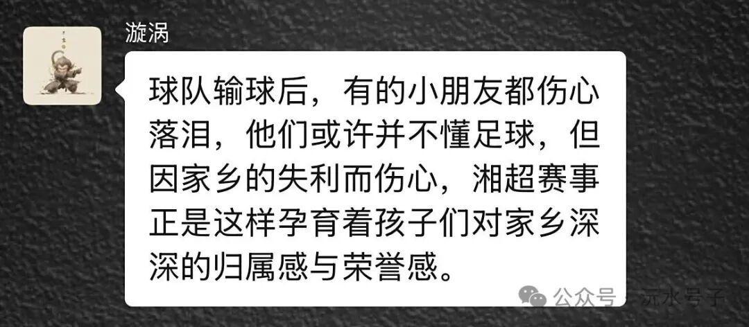 网友:“球队输球后,有的小朋友都伤心落泪,他们或许并不懂足球,但因家乡的失利而伤心,湘超赛事正是这样孕育着孩子们对家乡深深的归属感与荣誉感。”