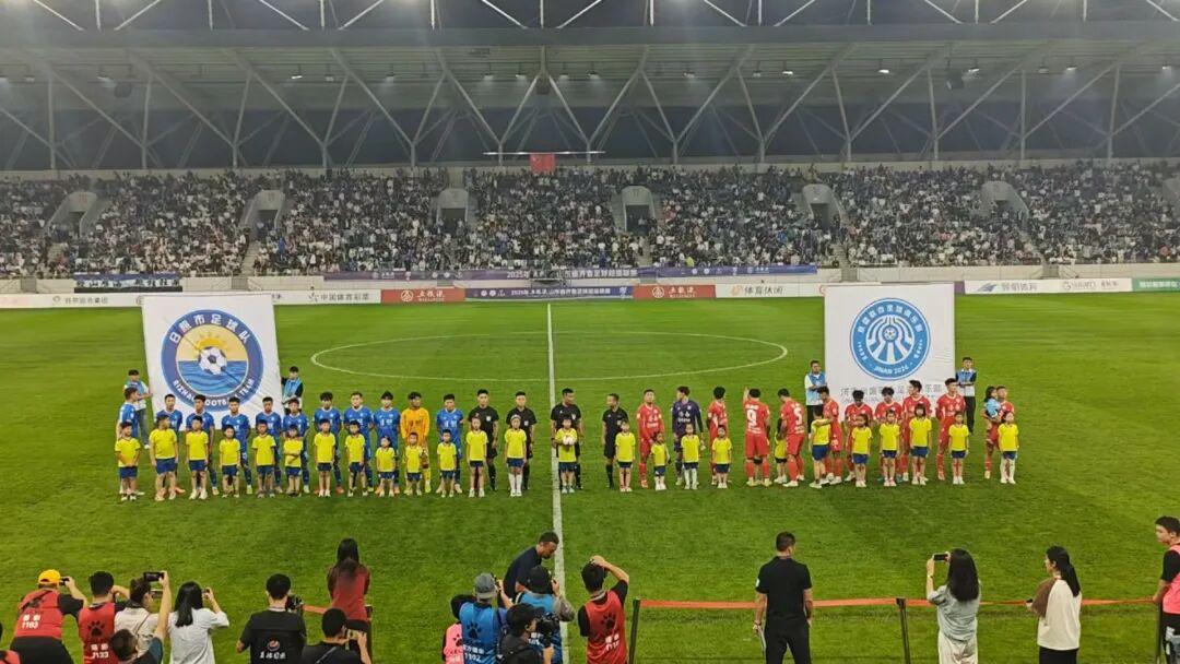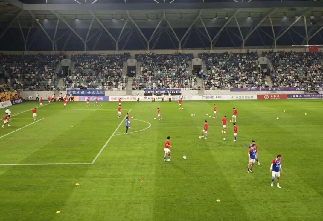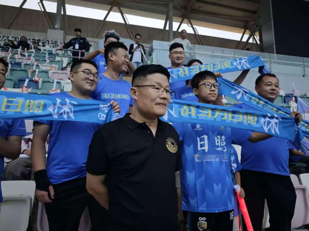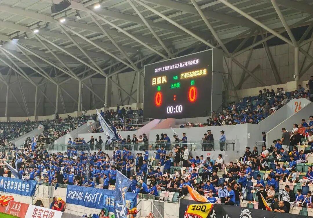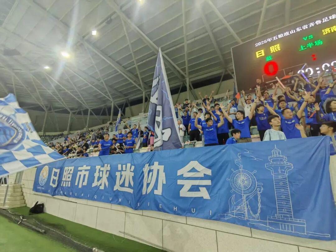 夜幕中的日照国际足球中心宛如一颗璀璨的明珠,看台上涌动着的不仅是日照全市的球迷,更有跨越三百公里而来的百余位济南球迷。开赛前半小时,北看台的日照球迷与客队看台的济南球迷隔空相望,互致问候,为这场日照赛区首站比赛书写下温暖的序章。