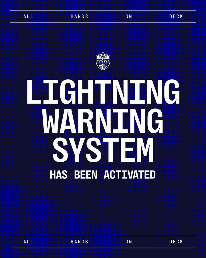 然而,比赛进行过程中突发意外情况。据狮城水手官方发布的公告显示,由于当地闪电预警系统被激活,出于对球员和现场观众安全的考虑,比赛不得不中断。