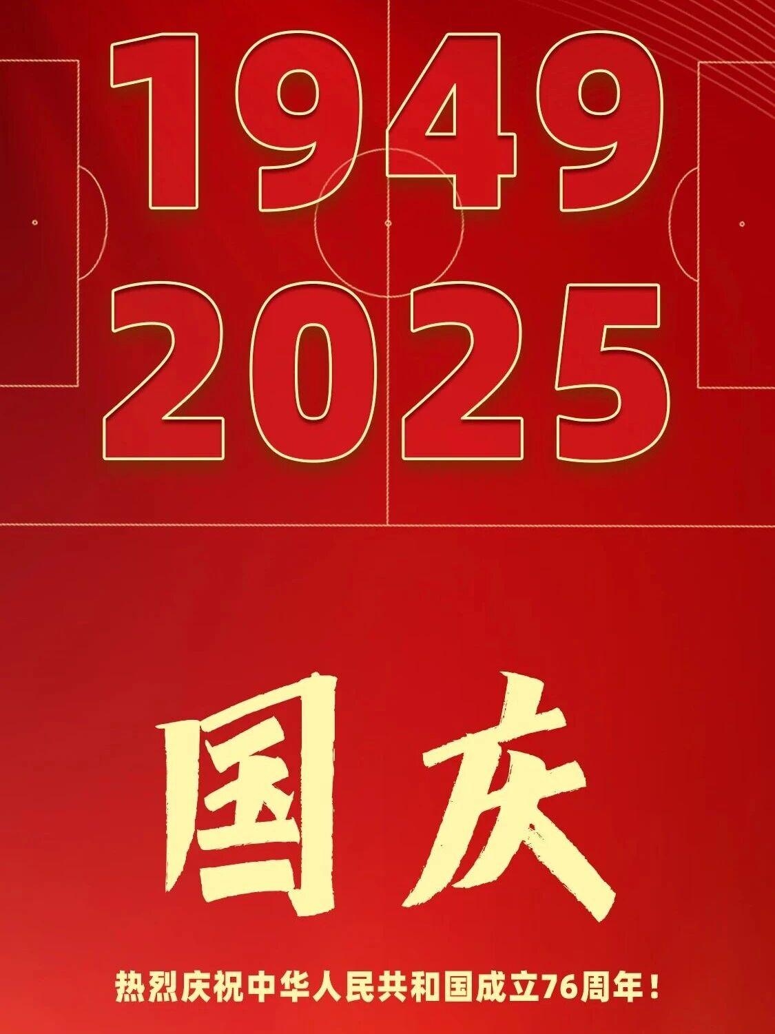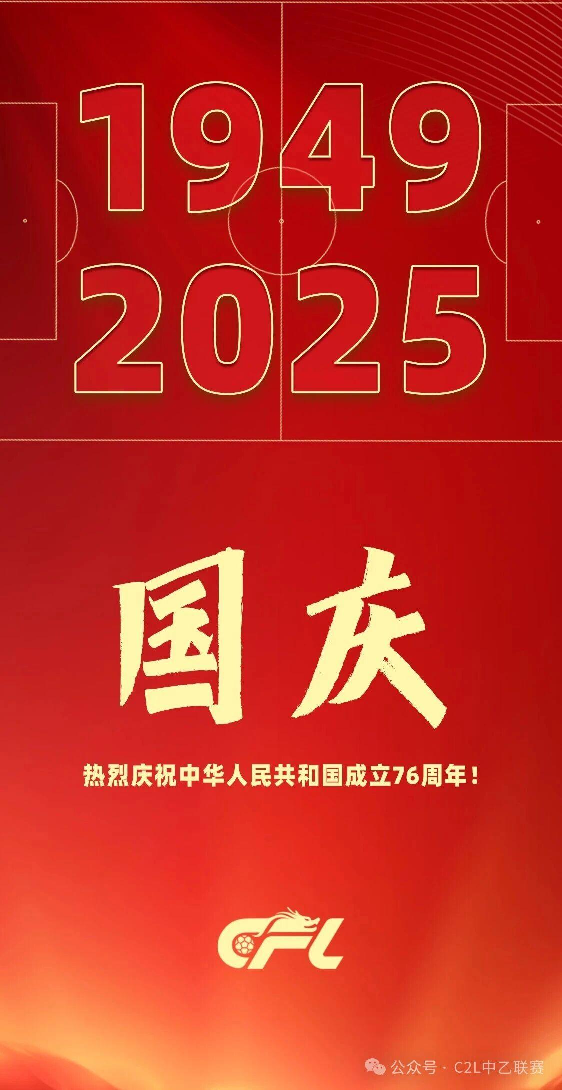 值此重要时刻,中国足球职业联赛全体成员衷心祝愿:伟大祖国繁荣昌盛,国泰民安!愿这片承载着梦想的绿茵场,永远见证中华儿女奋勇向前的身影;愿这份以足球为名的赤子之心,永远与祖国的脉搏同频共振。