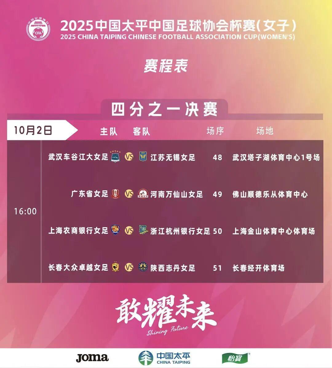 2025中国太平中国足球协会杯赛(女子)四分之一决赛即将打响,上海农商银行女足将在区体育中心足球场内场主场迎战浙江杭州银行女足,这场强强对话不容错过。