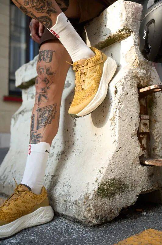 其专业性源于萨洛蒙深耕越野跑领域的技术积淀——中底采用全新材质Energy Foam EVO,不仅具备良好的缓震能力,同时保持克制的回弹表现,非常适合日常训练与周末长距离慢跑,不会对双腿造成太大负担;contaGRIP抓地科技征服碎石坡,EVA中底缓震兼顾长距离奔跑。但更巧妙的是,萨洛蒙将这些“硬核科技”转化为“潮流语言”:跑鞋的撞色设计、轻量化外观,更兼顾了潮流感。