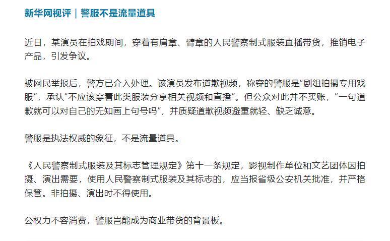 央媒更是第一时间发文怒批“警服不是流量道具,法律尊严更不容亵渎”。