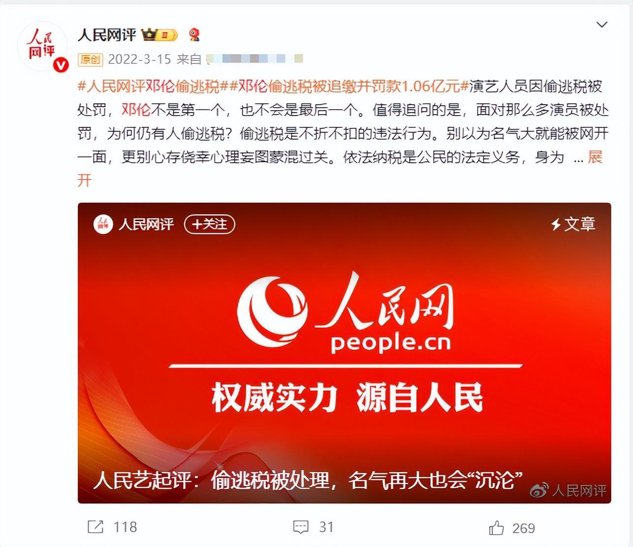 不仅如此,就连人民网都发文点名了“邓伦”偷逃税的行为。