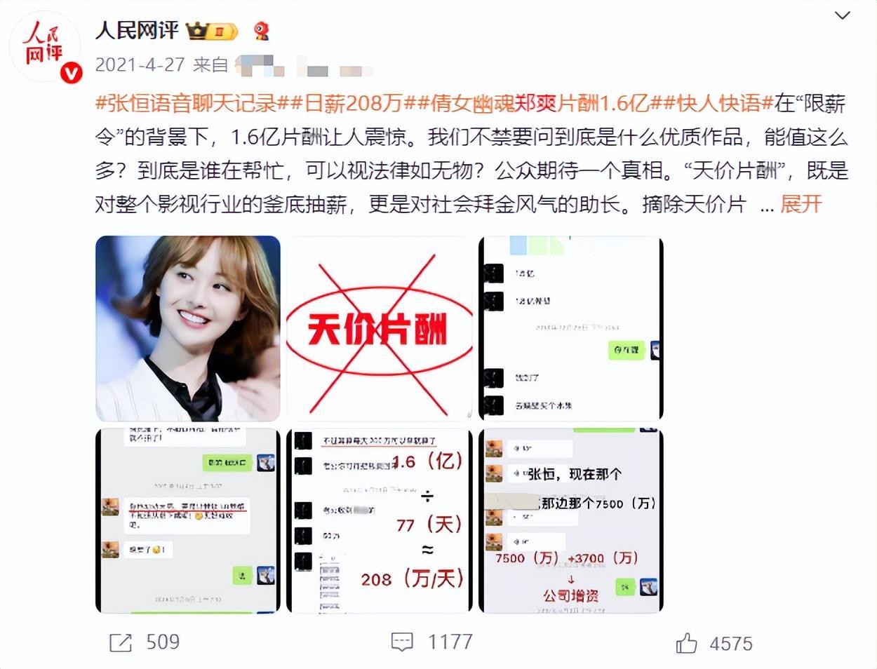 但是直到2021年,郑爽被举报仅拍摄2个多月就获取了高达1亿多的天价片酬。