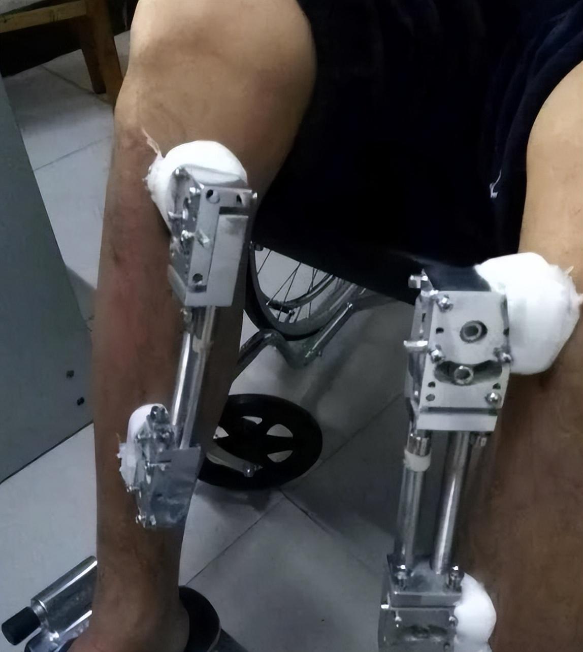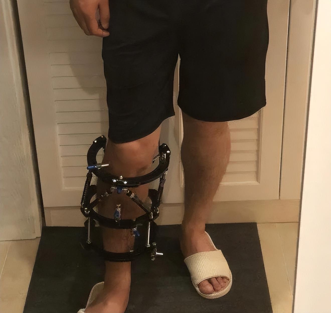 拆了固定器他才发现,自己的两条腿已经变得扭曲,原来能轻松跑跳打篮球,现在走路都费劲。