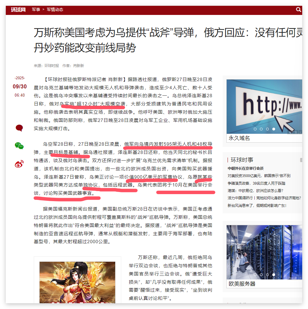 如今,美国又与乌克兰磋商900亿美元的军购协议,并可能升级提供战斧导弹,还明确准许乌克兰打击俄罗斯纵深目标。