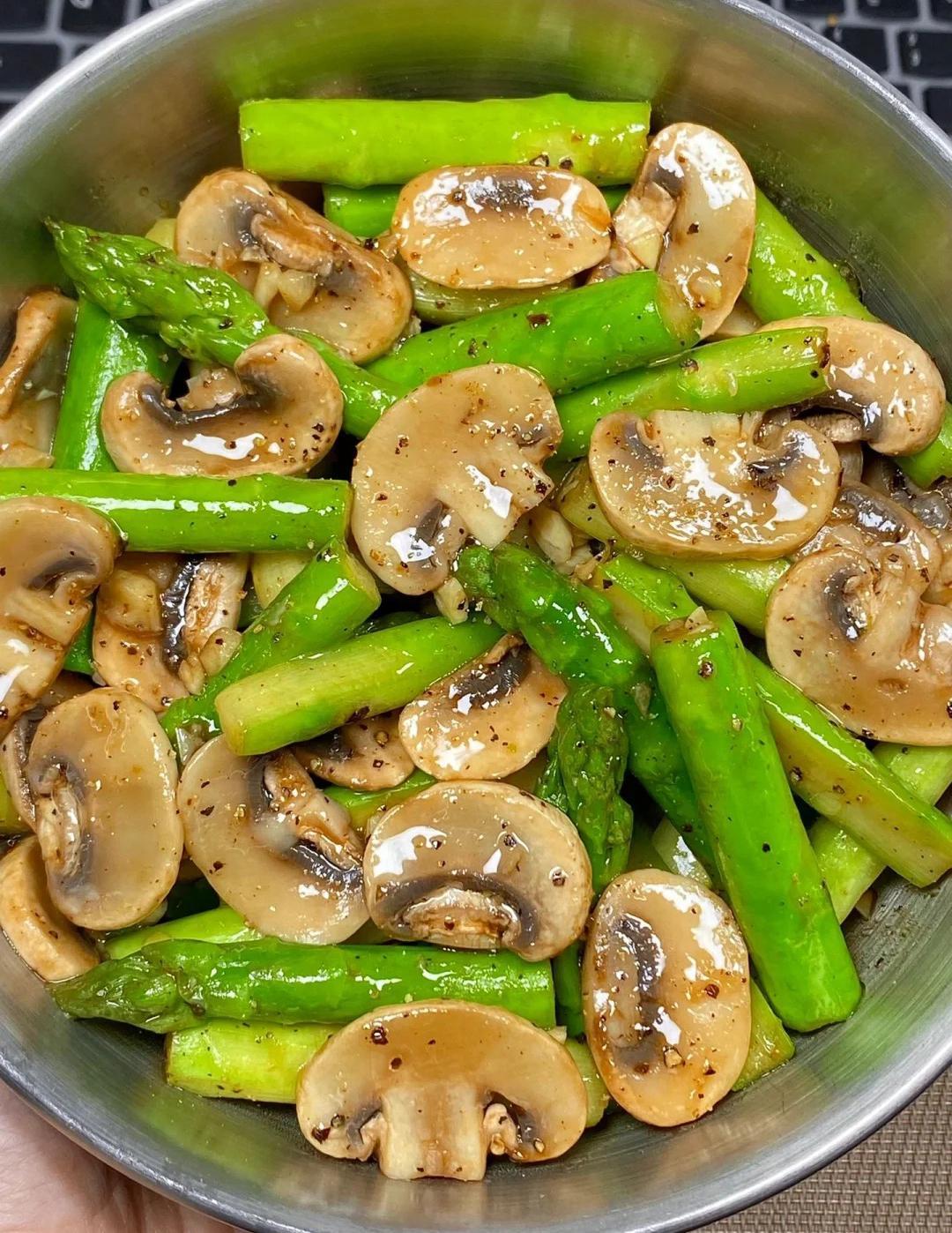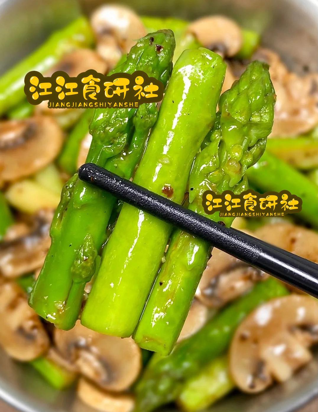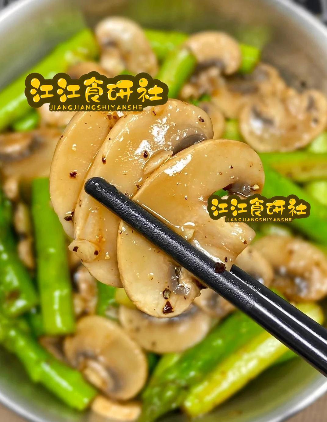 口蘑的鲜味和芦笋是绝配,不用太多调料,味道就自然天成。