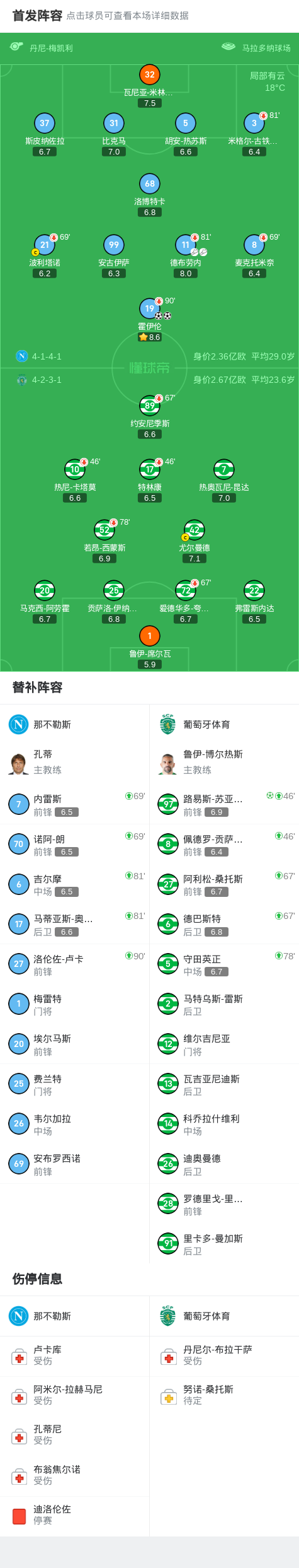 此役过后,那不勒斯以两连胜积6分暂列小组榜首,葡萄牙体育则遭遇新赛季欧冠首败。下一轮两队将分别对阵皇家马德里和曼城,出线形势依然充满变数。