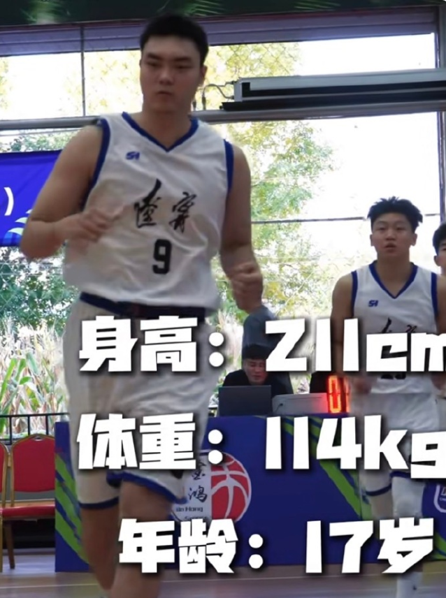 于善元的天赋堪称顶级,年仅17岁便拥有2.11米的身高和2.22米的臂展,静态天赋在黄种人中属顶尖水平。比赛中他展现出的爆发力令人惊叹,虽然缺乏官方体测数据,但多次完成隔人暴扣,保守估计垂直弹跳达70-80厘米,能扣篮绝不上篮的打法极具观赏性。