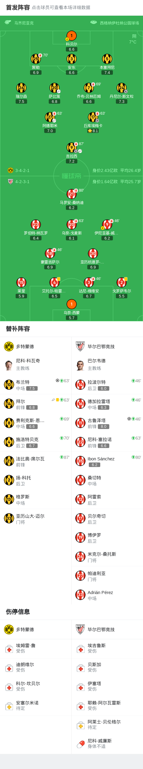 第70分钟,多特蒙德也进行换人调整,施洛特贝克、费利克斯-恩梅加替补登场。