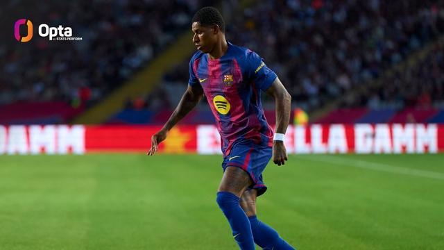 根据Opta数据统计,本赛季至今拉什福德在各项赛事中已代表巴塞罗那出场9次,累计送出5次助攻(Opta官方统计为4次,存在统计口径差异)。这一数据在五大联赛所有英格兰球员中位居榜首,包括英超、西甲、德甲、意甲和法甲在内的顶级联赛中,没有其他英格兰球员的助攻次数能超越这位26岁的前场多面手。